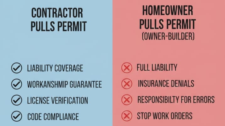 - If you pull it (Owner-Builder): You are taking full liability. If a worker gets hurt or the work is non-compliant, it falls entirely on your shoulders.