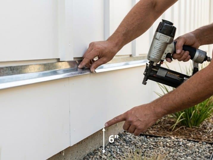 - Z-Flashing: Because panels are 8 or 9 feet tall, you often have to stack them to reach a roofline. Where the top panel meets the bottom panel, you must install metal “Z-flashing.” This metal piece kicks water out and away from the wall, preventing it from seeping into the seam.